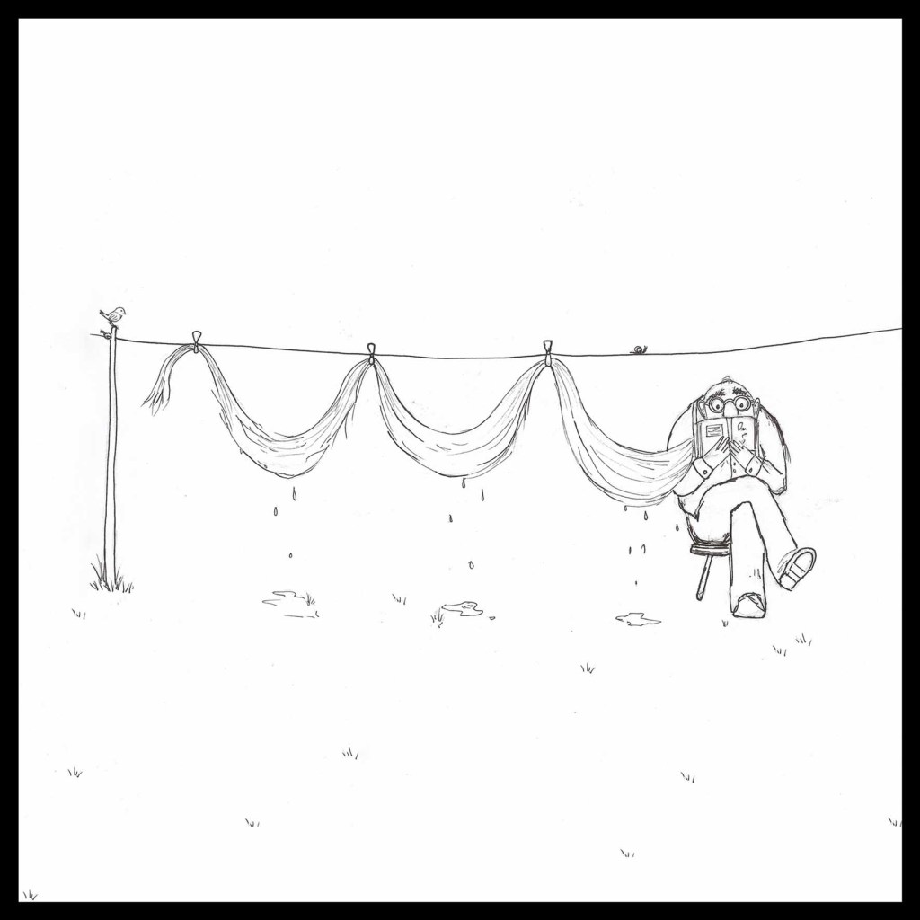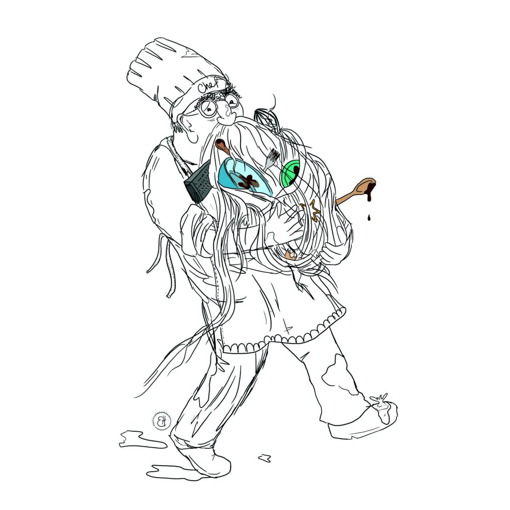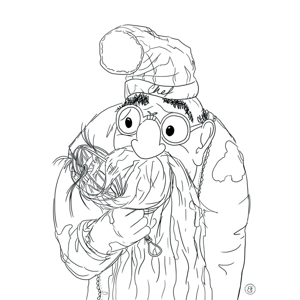 An elderly gentleman who has an extraordinary long beard and moustache. Simple sketches of his daily life.